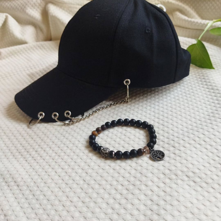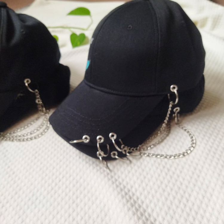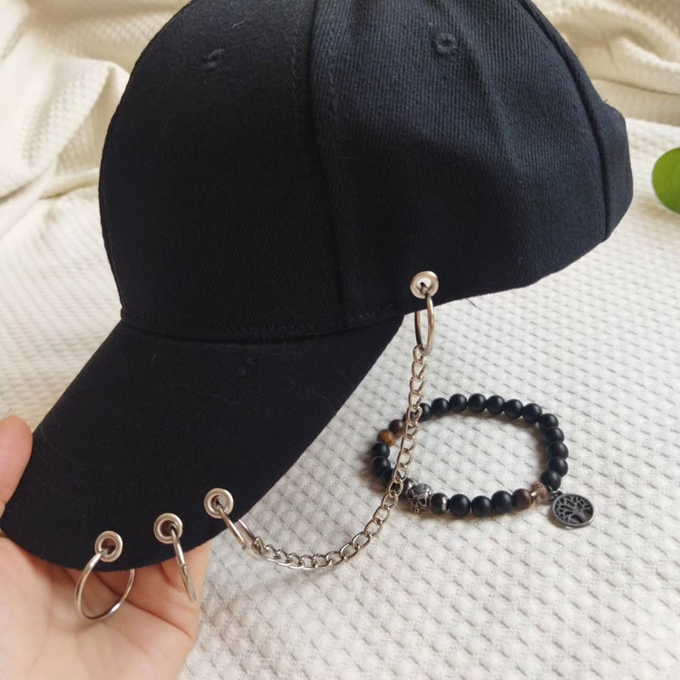 کلاه کتان مشکی ساده همراه پیرسینگ و زنجیر مناسب چهارفصل