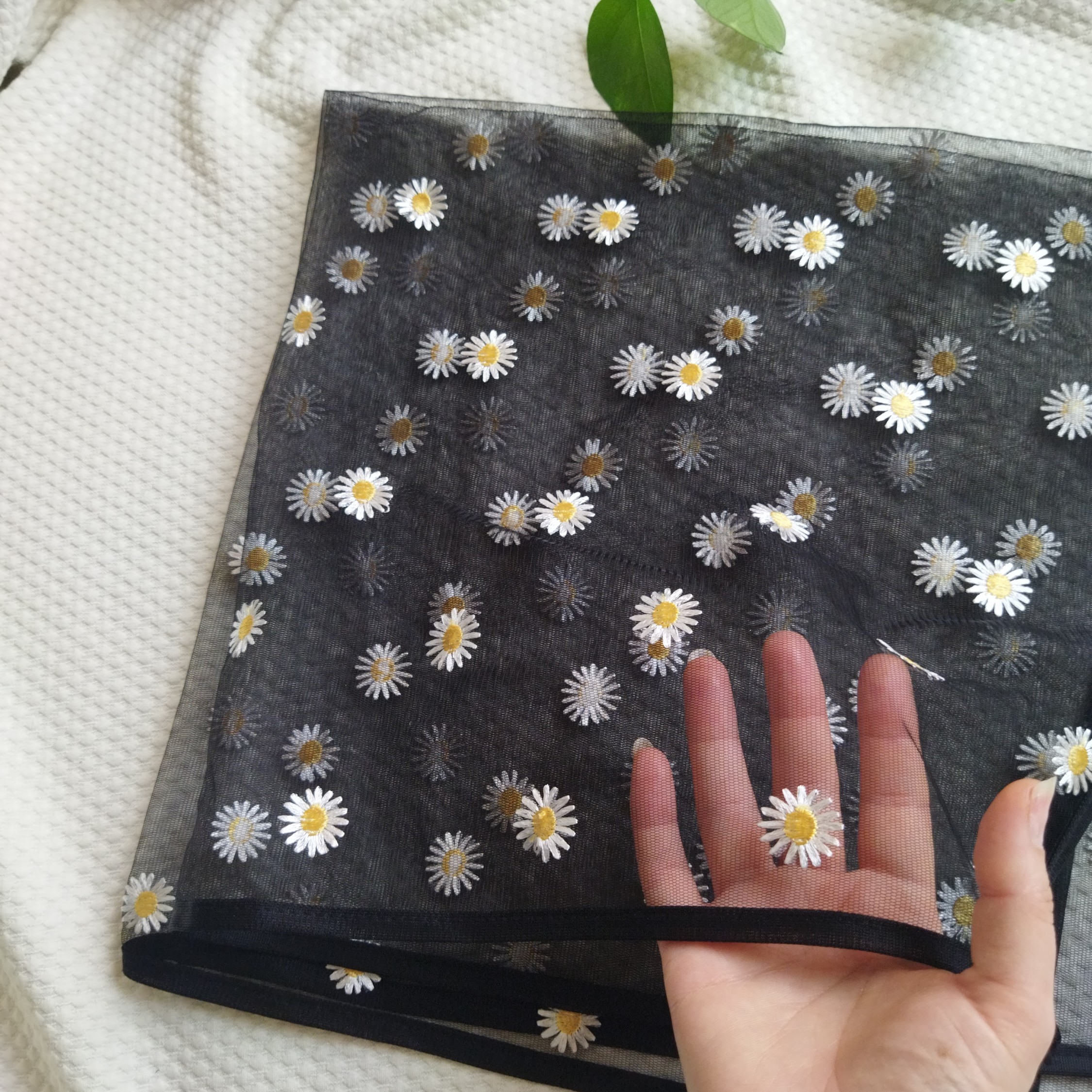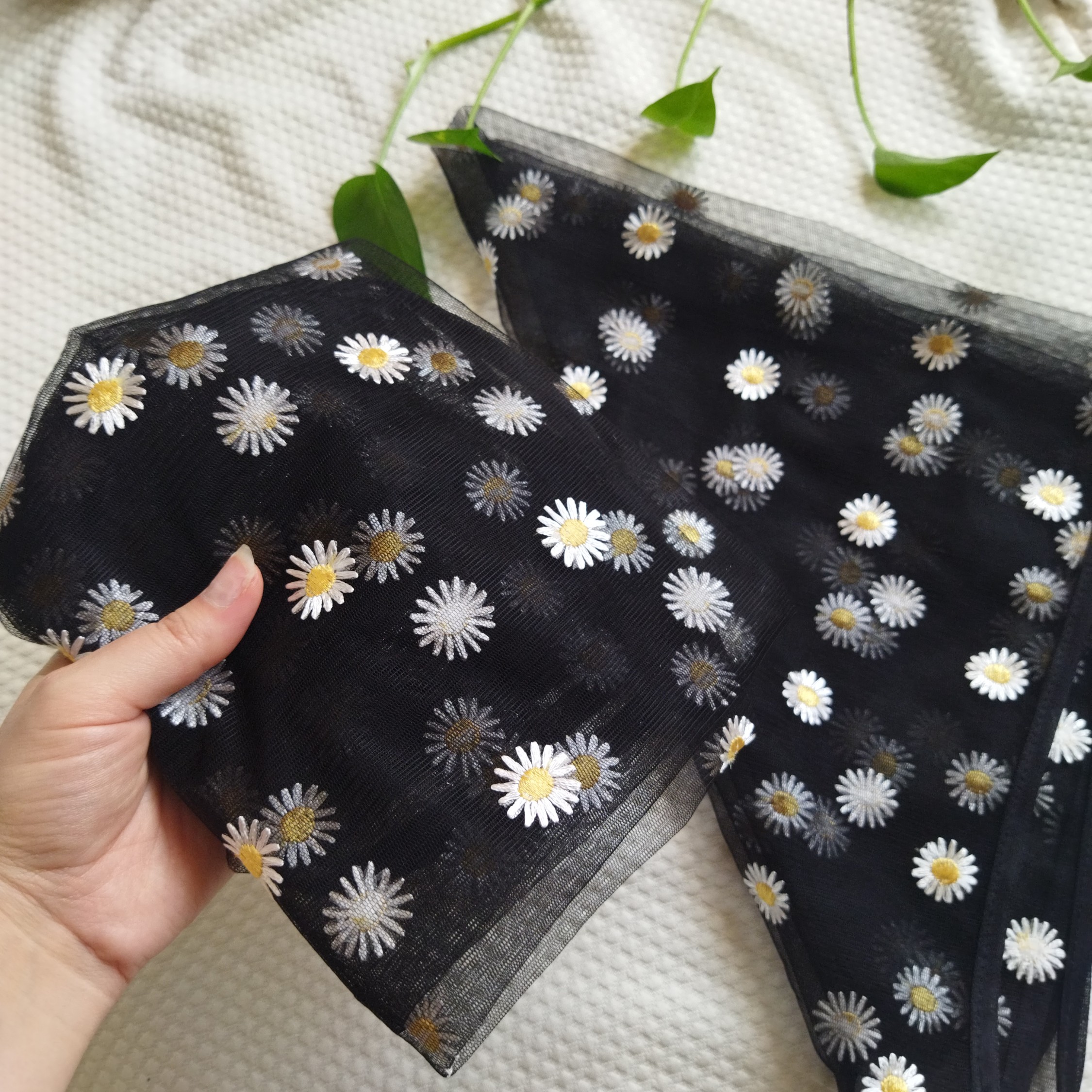 مینی اسکارف گیپور مشکی طرح بابونه