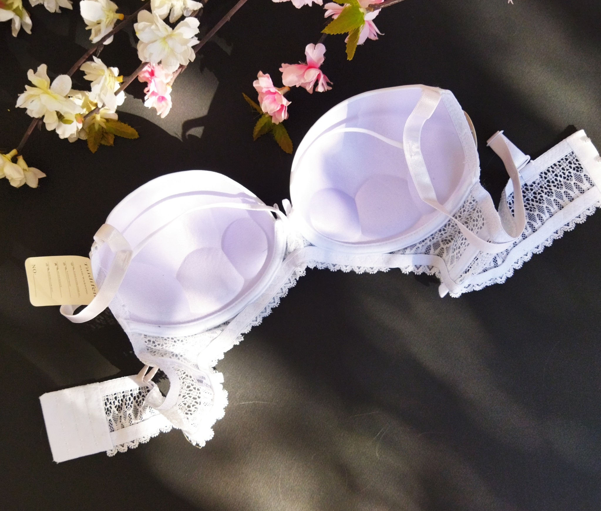 ❌رنگ سفید تعدادی لک نقطه ای دارد که با شستشو برطرف می شود❌ اسفنج نازک فنردار و قرینه کننده نیم جک برای پوش آپ بهتر هارنس روی سینه کاپ راحت برای استفاده روزانه دستک گیپور و جذاب