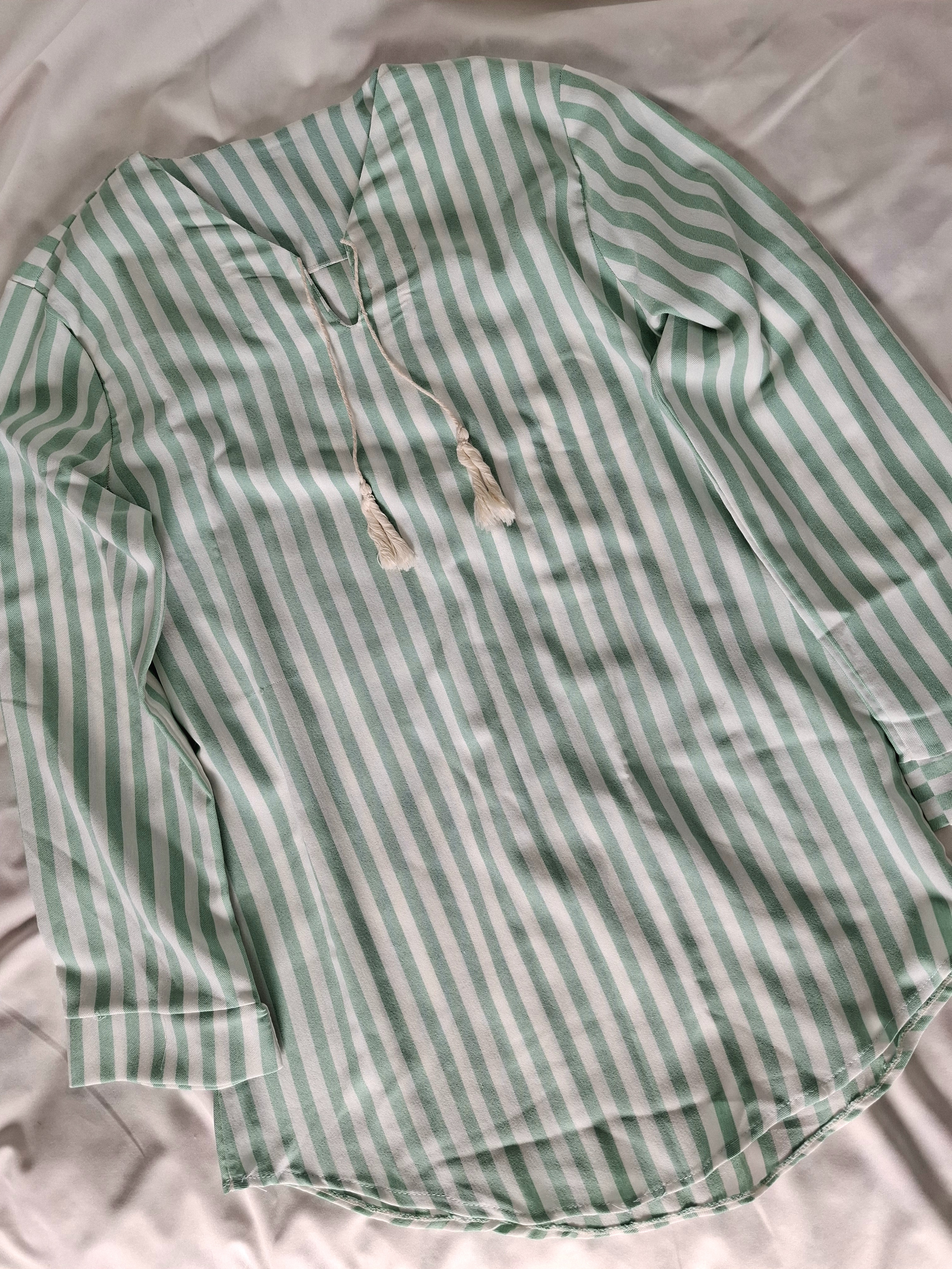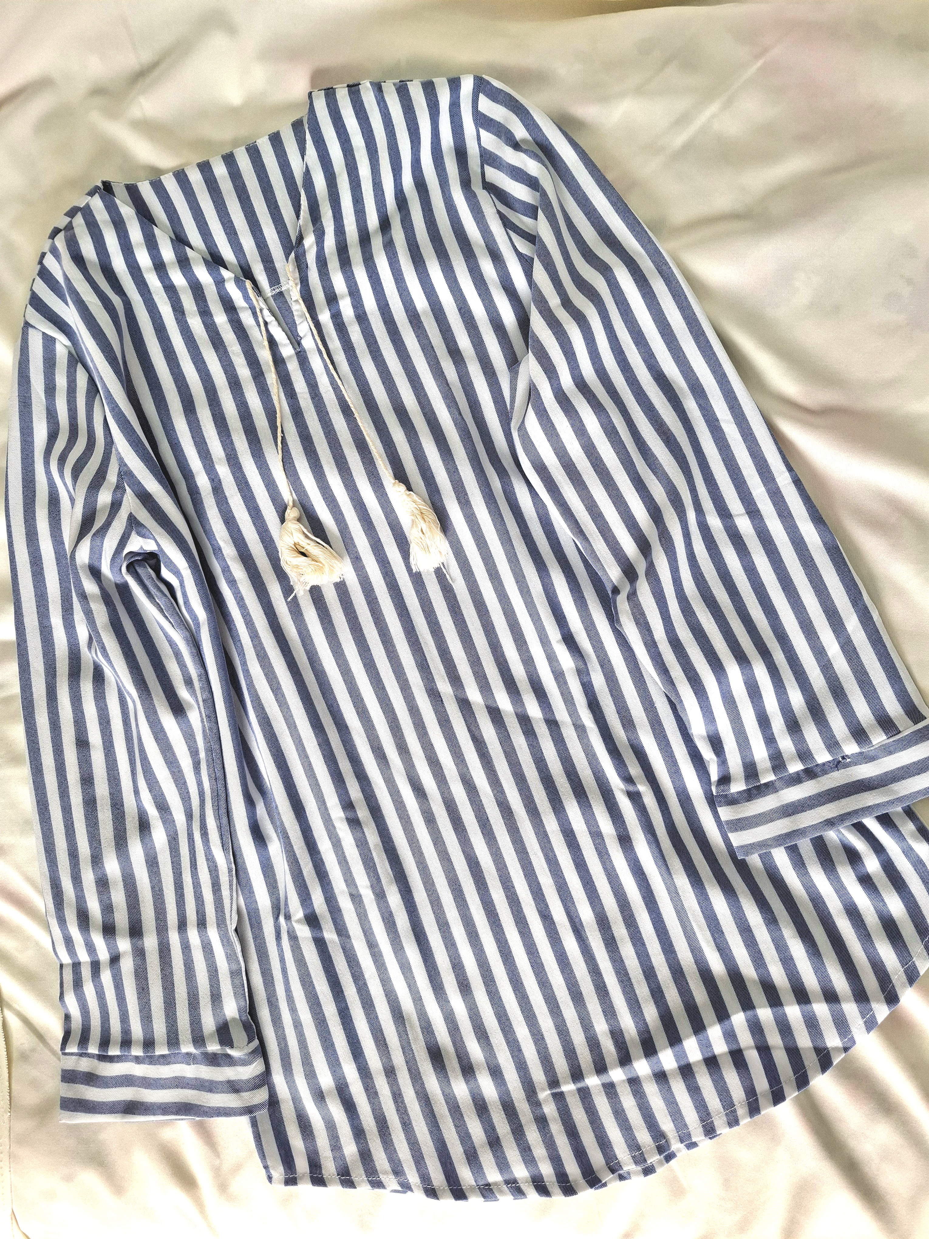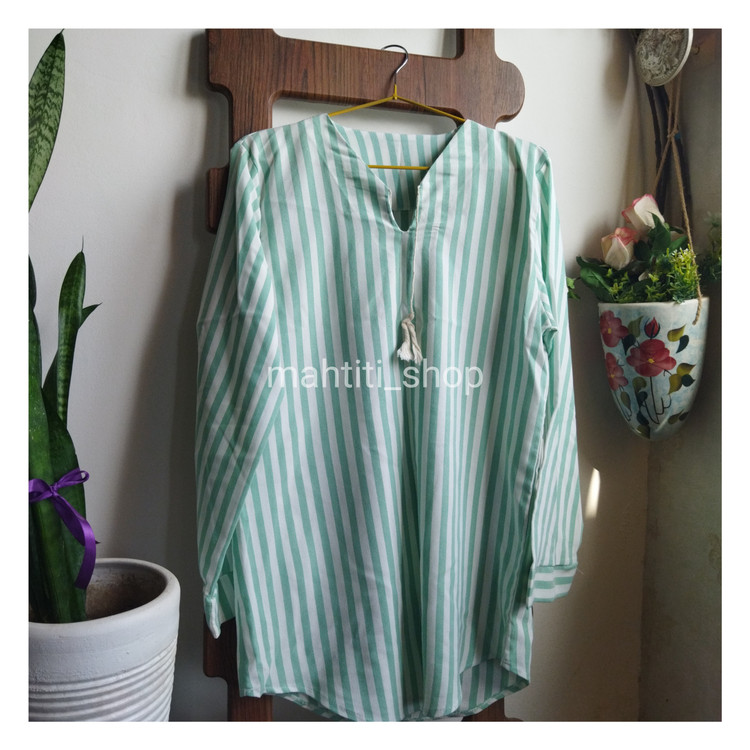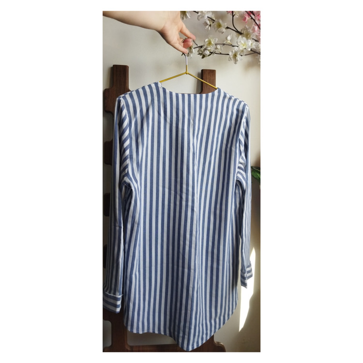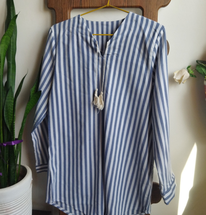 شومیز راه راه مناسب فصل بهار و تابستان با جنس الیاف طبیعی نازک و مناسب استایل خیابان و بسیار کژوال، قابل ست شدن با شلوار کتان گتردار همرنگ یا رنگ های کرم و روشن.