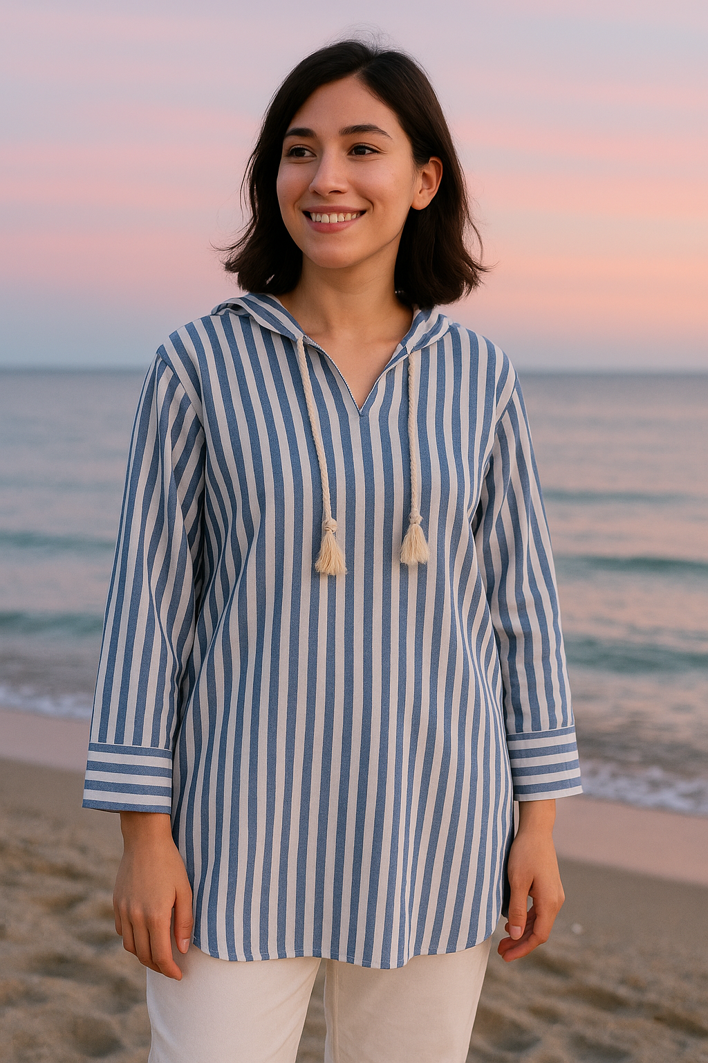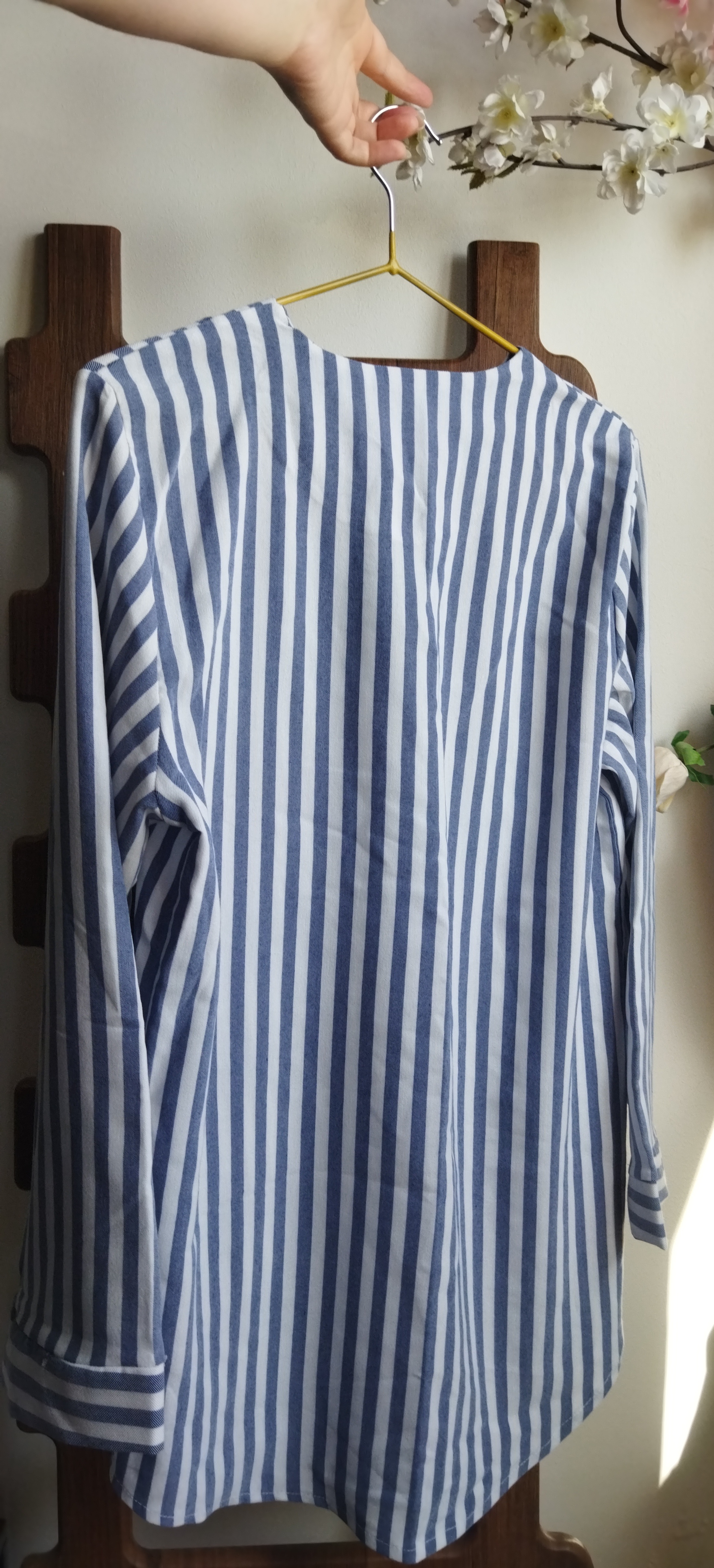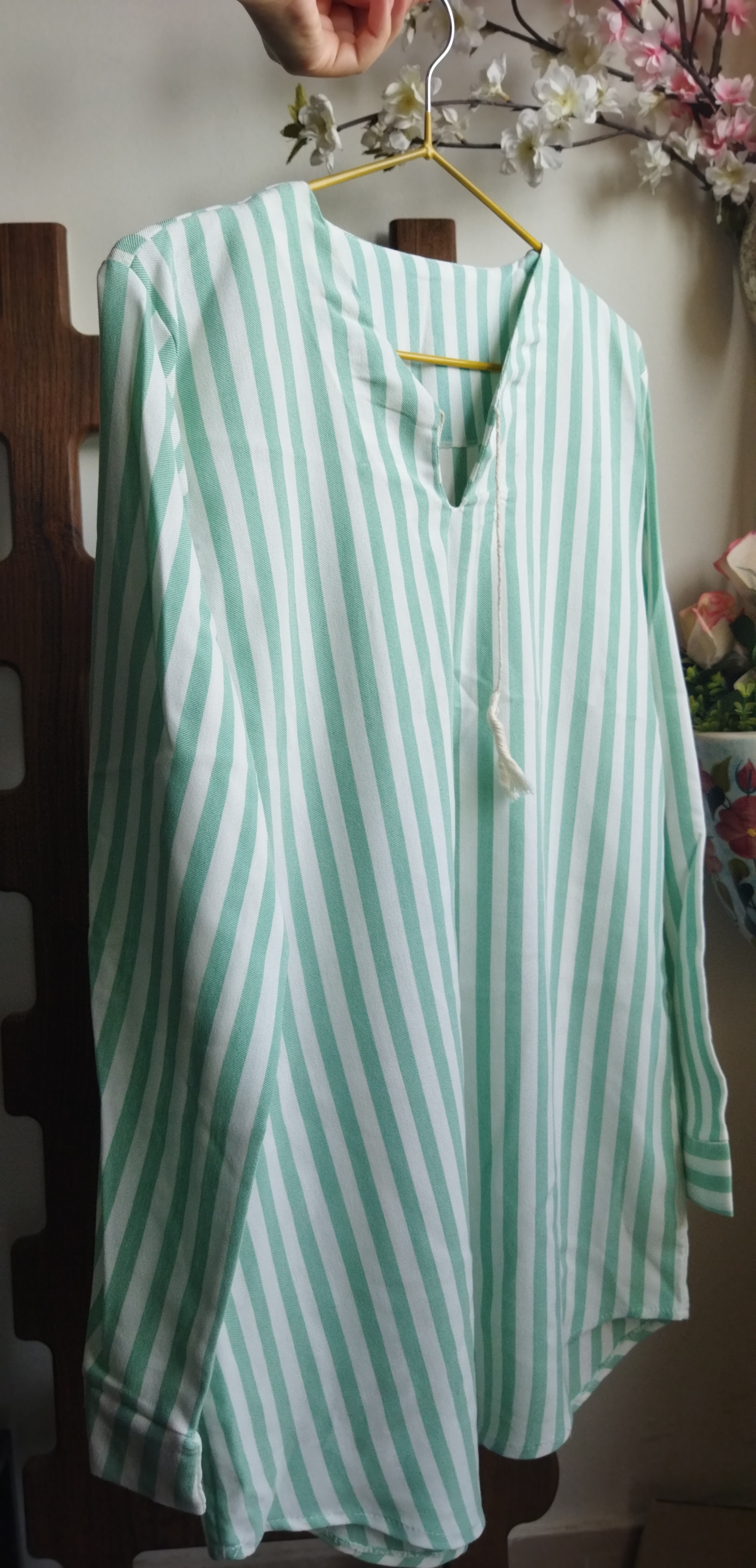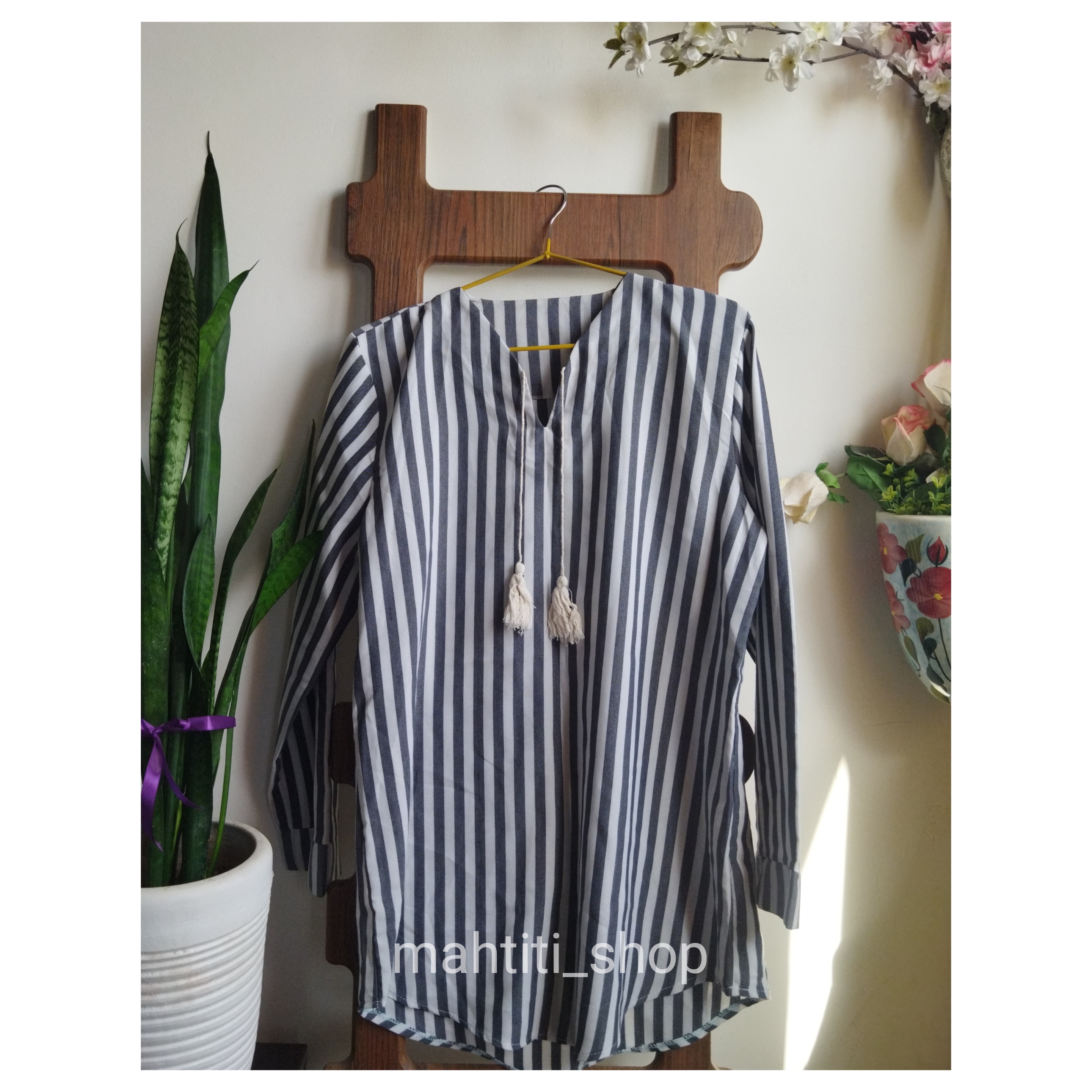 شومیز راه راه مناسب فصل بهار و تابستان با جنس الیاف طبیعی نازک و مناسب استایل خیابان و بسیار کژوال، قابل ست شدن با شلوار کتان گتردار همرنگ یا رنگ های کرم و روشن.